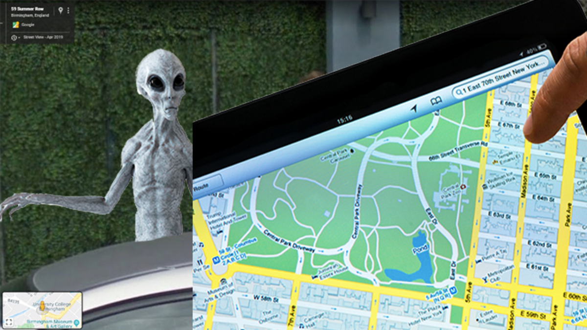 Google Maps has captured all sorts of things, from people cheating on their spouses to neighbors getting vengeance, but now, it might have photographed something from another world... or perhaps the underworld. The image comes from a small lane in Birmingham, England. It was discovered by Stevie Hall, who was looking for a place to park ahead of a trip there. It shows a large man with a freaky, green, demonic alien face.